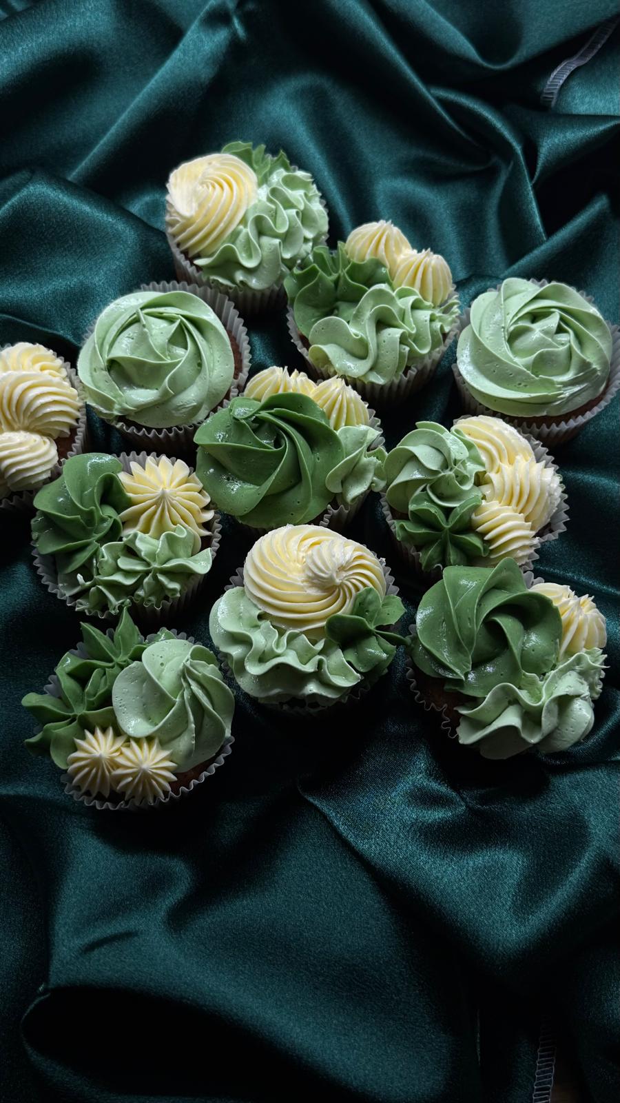 Zachtgroene, prachtig gedecoreerd met botercrème