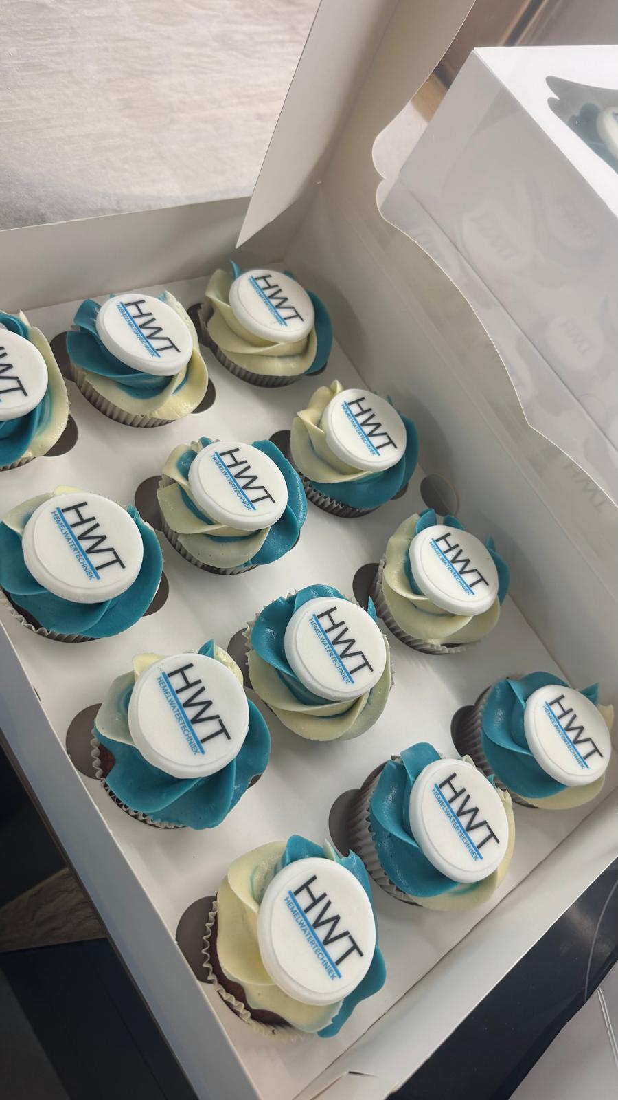 Heerlijke cupcakes versierd met bedrijfslogo's